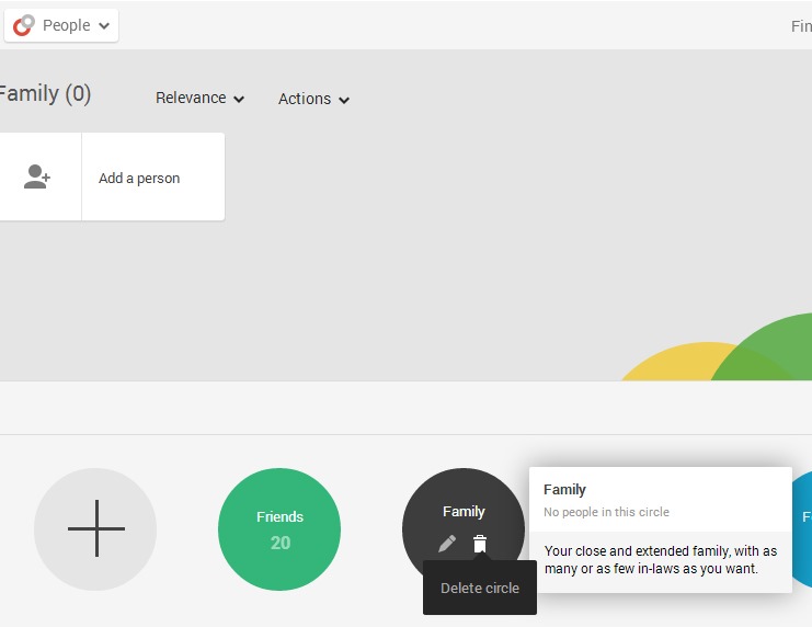 See the plus sign in the gray circle on the left? You can add circles, which are essentially groups. You can also edit and delete circles (note the dark gray Family circle with the edit pencil and the delete trashcan.) I, for instance, have a friends circle, along with blogs, readers, writers, authors, etc. I created circles in a way that makes sense to me.
